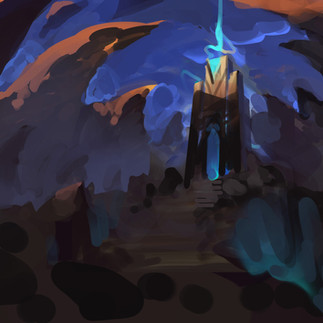 Finding the right presence was key. Early sketches explored a range of forms, from circular portals to fortress-like structures, but the gate needed to avoid feeling like a cliché monument. Instead, it had to suggest a collision between power and restraint. The final design leans on scale: towering slabs, cyan-lit channels, and tiny silhouettes at its base, forcing the viewer to feel small before its weight. Its presence carries both reverence and dread, as though approaching it is a choice you cannot step back from.